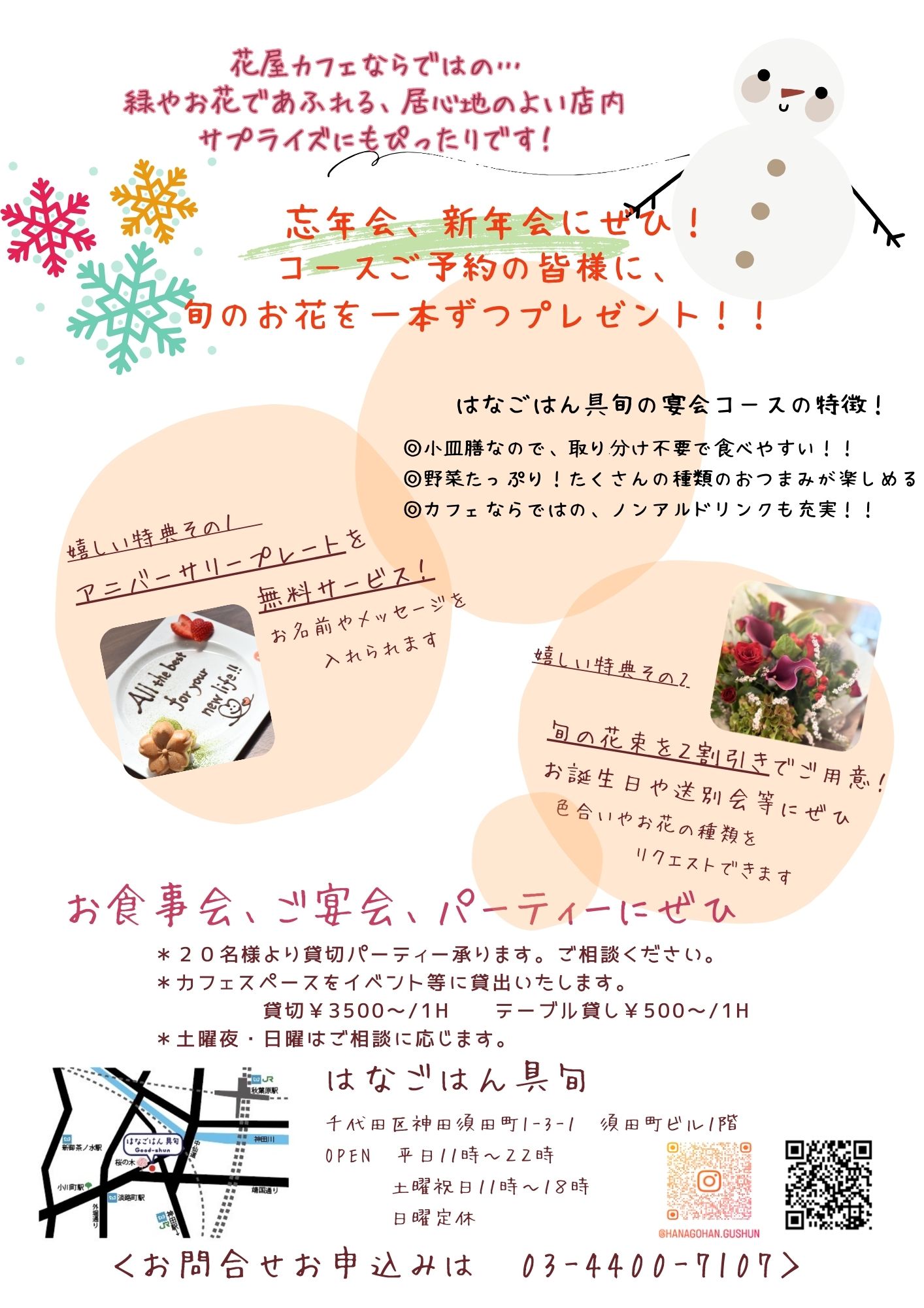 コースご予約の皆様に、お一人1本ずつ、「旬のお花」をプレゼント!!